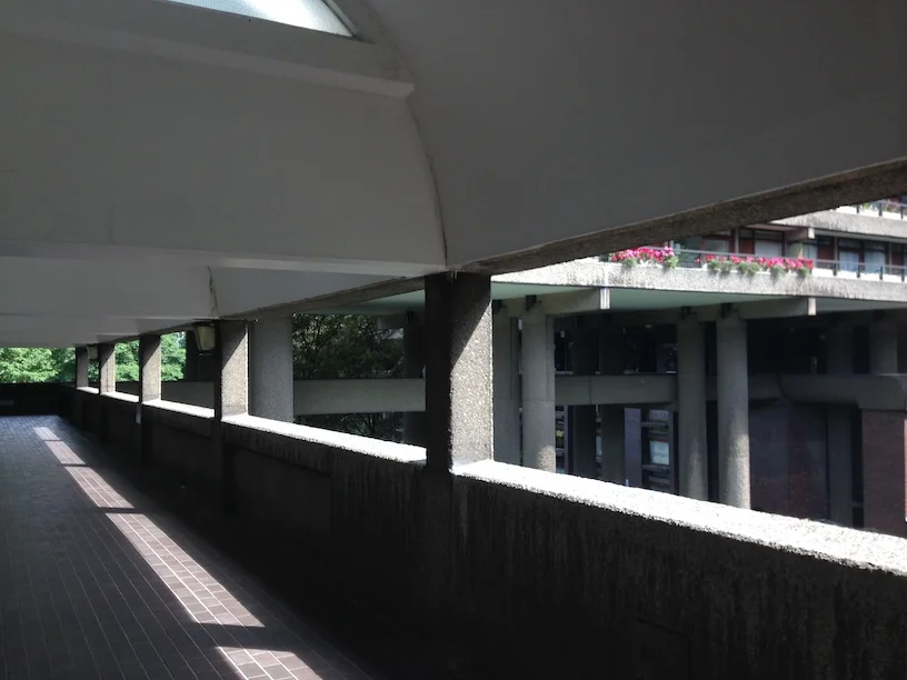 interior corridor connecting Barbican lakeside with high-rise level 1.
